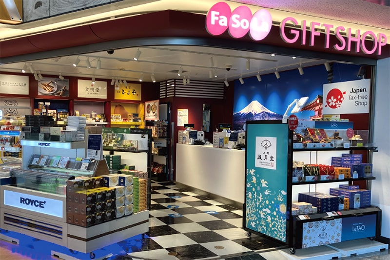 日本の土産品を集約し、食品・民芸品から時計や電器製品まで幅広い商品を取りそろえております。 出国審査後エリアにある店舗の特性を活かし、普段はその場所に行かないと手に入らないような日本各地の銘菓も数多くラインナップ。 海外向けの電器製品等も取りそろえており、幅広い客層のお客様にご利用いただいております。